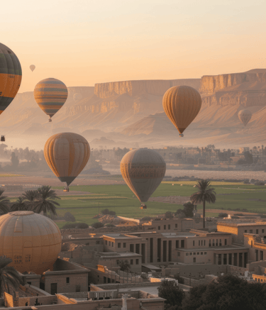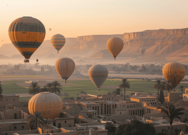 Riding a hot air balloon in Luxor is an experience that captures the true essence of Egypt’s ancient wonders and natural beauty. As the sun rises over the horizon, painting the sky in shades of gold and pink, you gently lift off the ground, embarking on a serene and breathtaking journey over one of the world’s most historically significant landscapes.